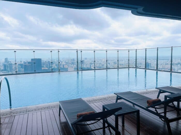 あまり広さはないものの、日本では決して味わえない、高層階の屋外プール。