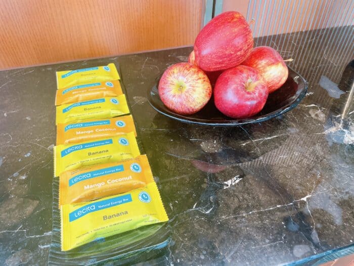 エネルギーバーとフルーツ。