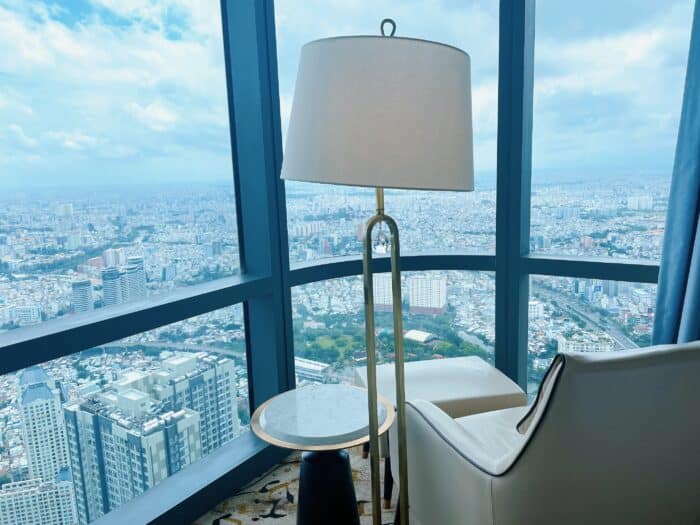 窓側にある一人がけソファからはホーチミンのパノラミックビューを楽しめます。