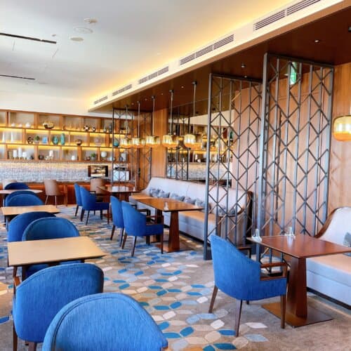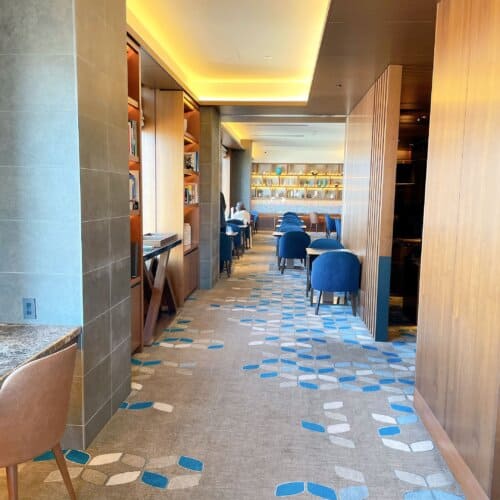 ラウンジに入ると左側と右側にフロアが分かれています。2017年にリノベーションされ、モダンラグジュアリーな空間が広がります。