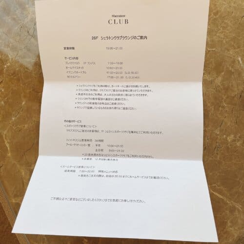シェラトンクラブはクラブフロアの宿泊客、マリオットボンヴォイのプラチナエリート会員以上が利用出来ます。