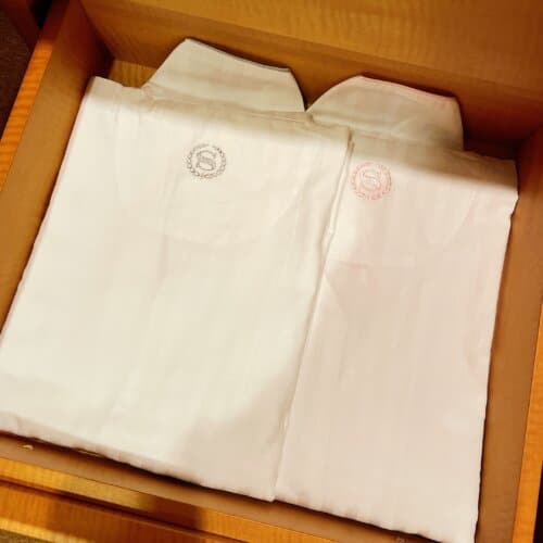 ビジネスホテルにあるような上下一体型のパジャマです。