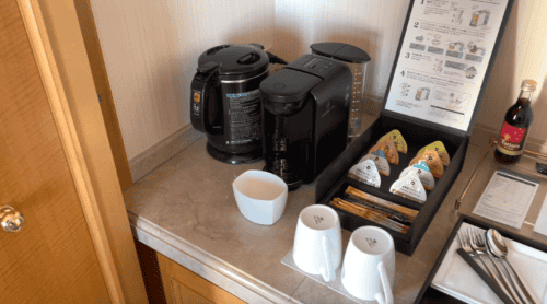 コーヒーや紅茶はポッドで提供。ティーカップ5杯分ほどの量が入っていました。